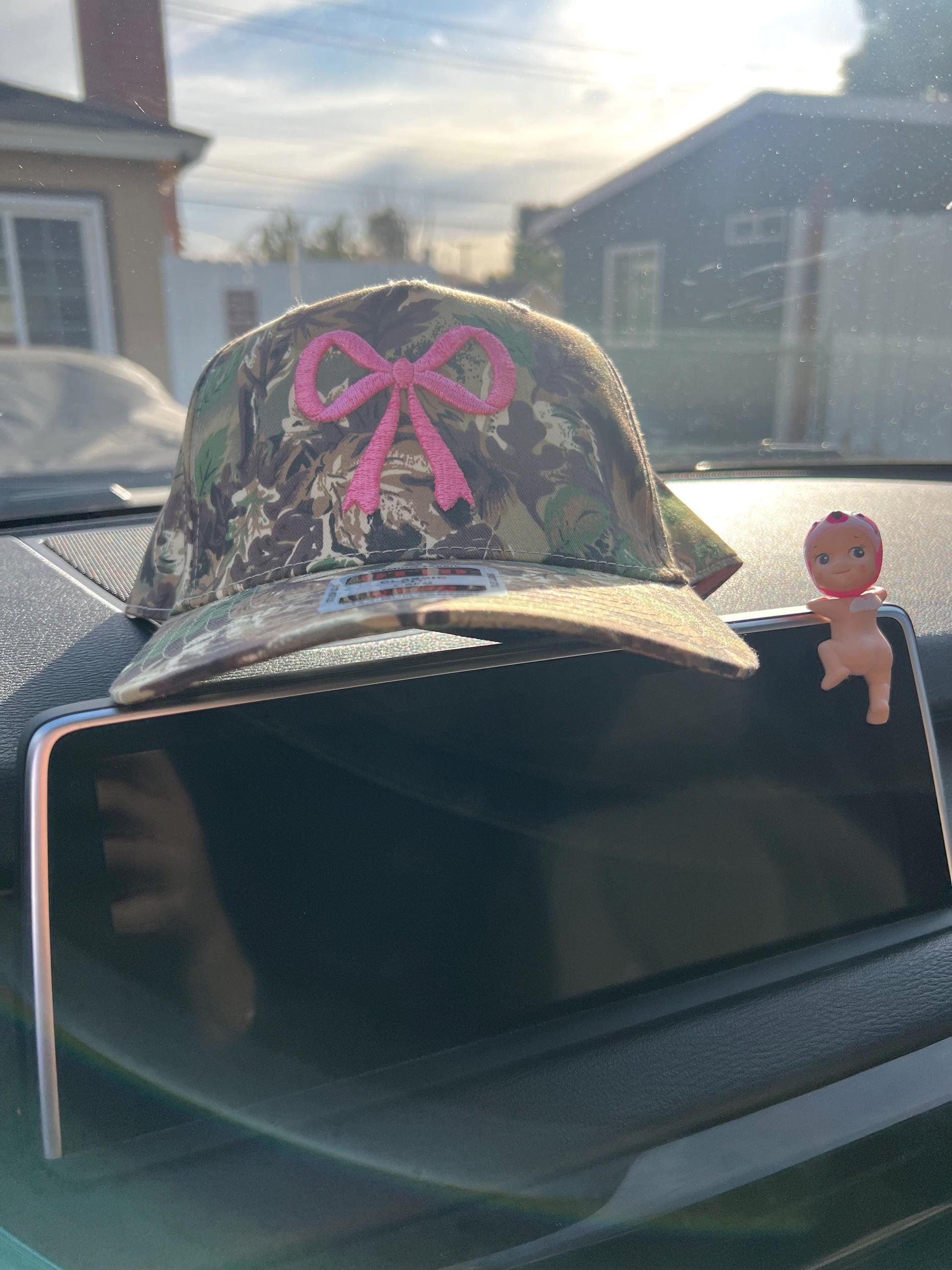 Camo pink bow embroidered hat w/ adjustable velcro back